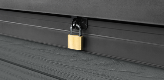 Transform your outdoor space with an elegant and weather resistant storage box. The Cortina 570L storage box, also known as Cortina 150, is the perfect solution to keep your sports equipment and poolside cushions neatly tucked away. A dual-piston opening system ensures smooth and finger-safe gliding of the lockable top cover. Made using the innovative double-wall Evotech™ UV resistant coating, the Cortina is ultra-sturdy and stable, as well as all-weather resistant. Enjoy the elegant wood-like texture and earthly colours that quietly blend into your garden without the hassle of scraping, priming and painting that high-maintenance timber requires.