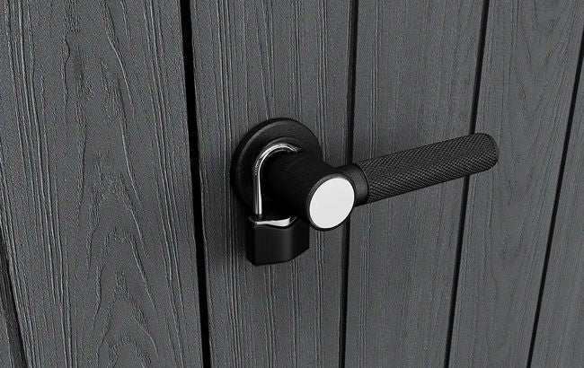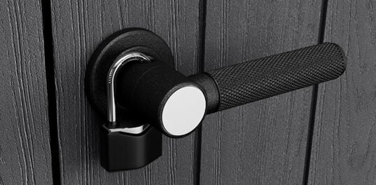 - Wide double doors and sloped threshold helps you take out larger equipment easily with lockable design for added security