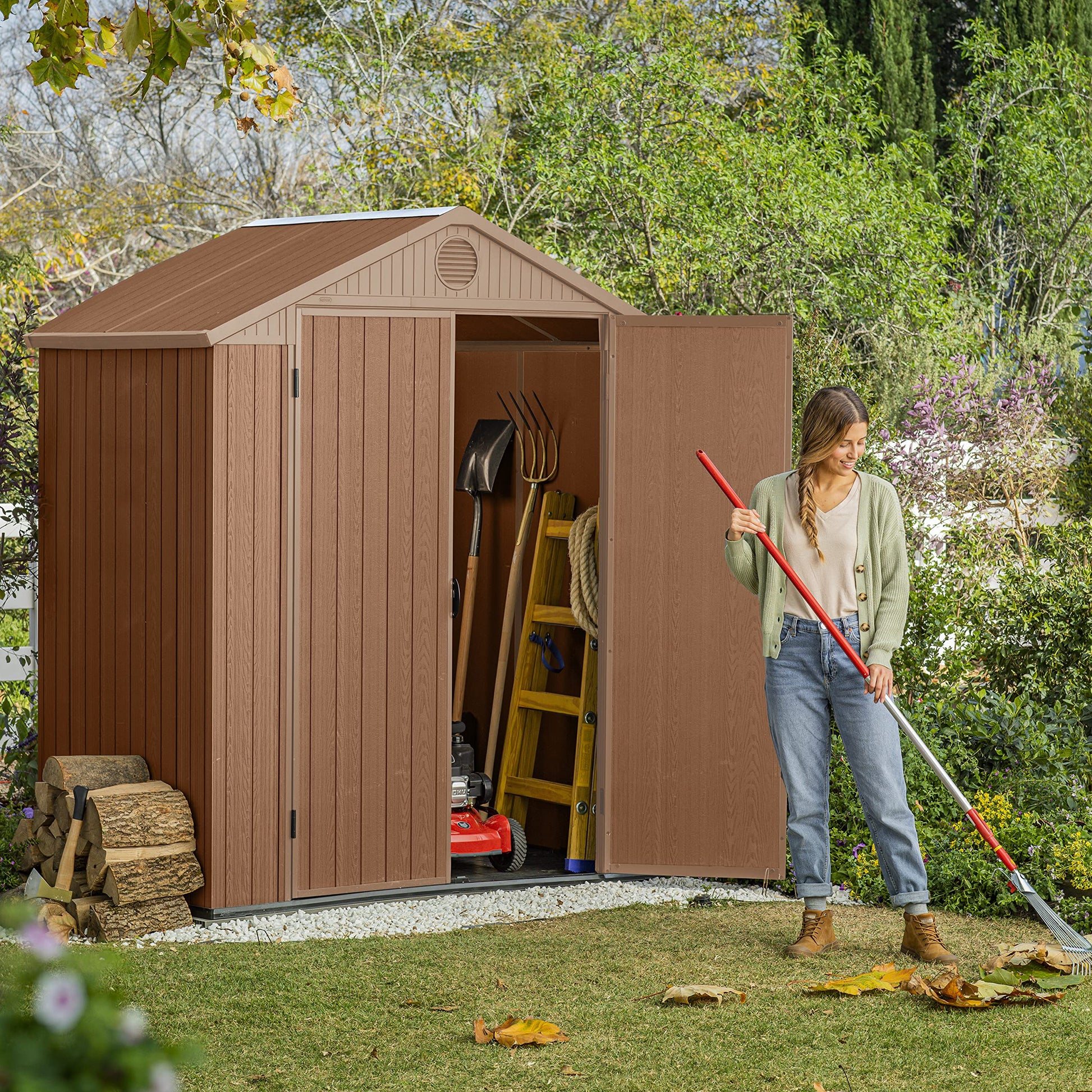 Keter Darwin Outdoor Apex Double Door Garden Storage Shed 6 X 4ft Brown Wood Look And Feel | Fade Free | All Weather Resistant | Safe And Secure | Zero Maintenance | 15 Year Warranty