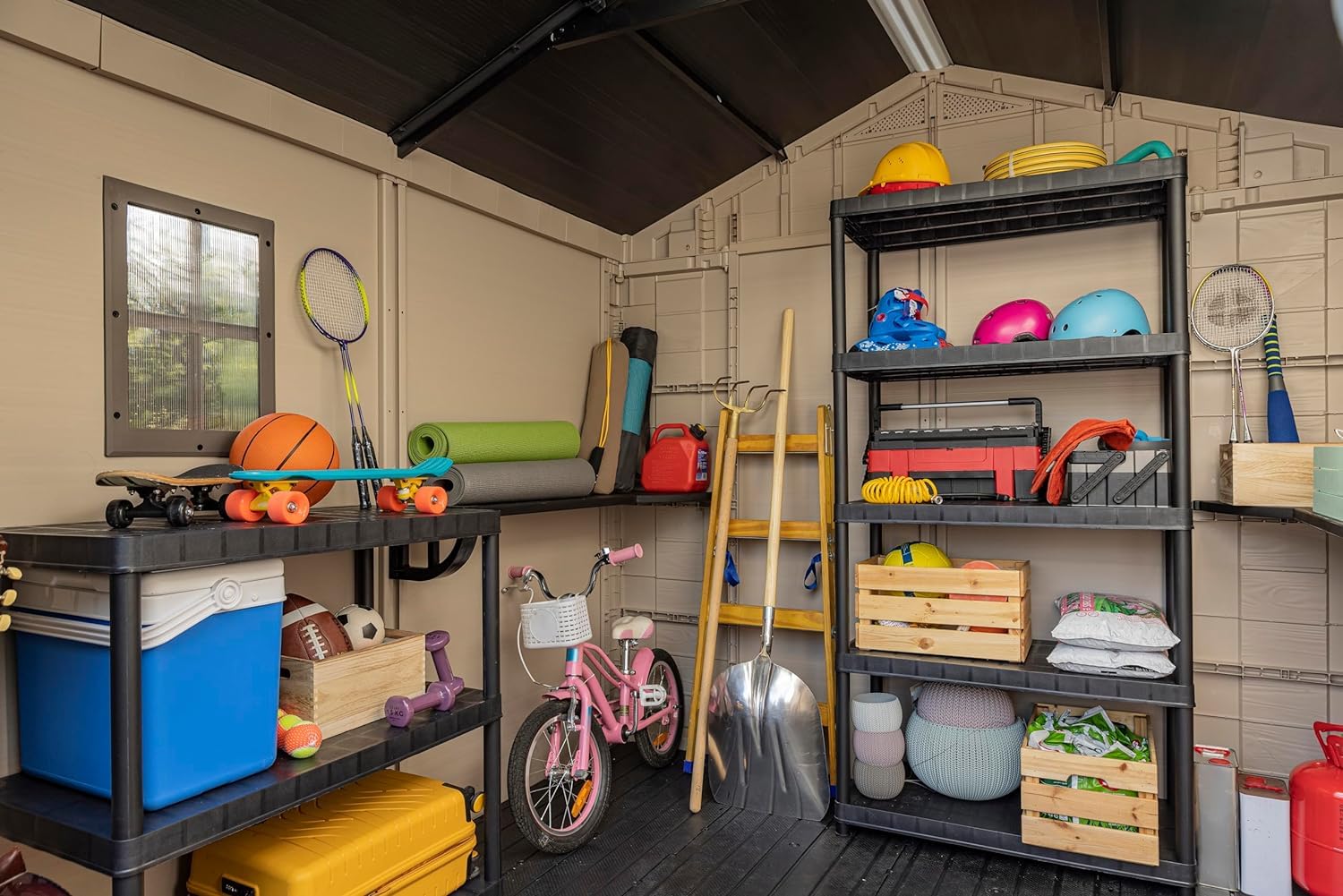 - Ideal outdoor storage solution for all garden tools and equipment, garden furniture including BBQ's, bicycles and DIY tools