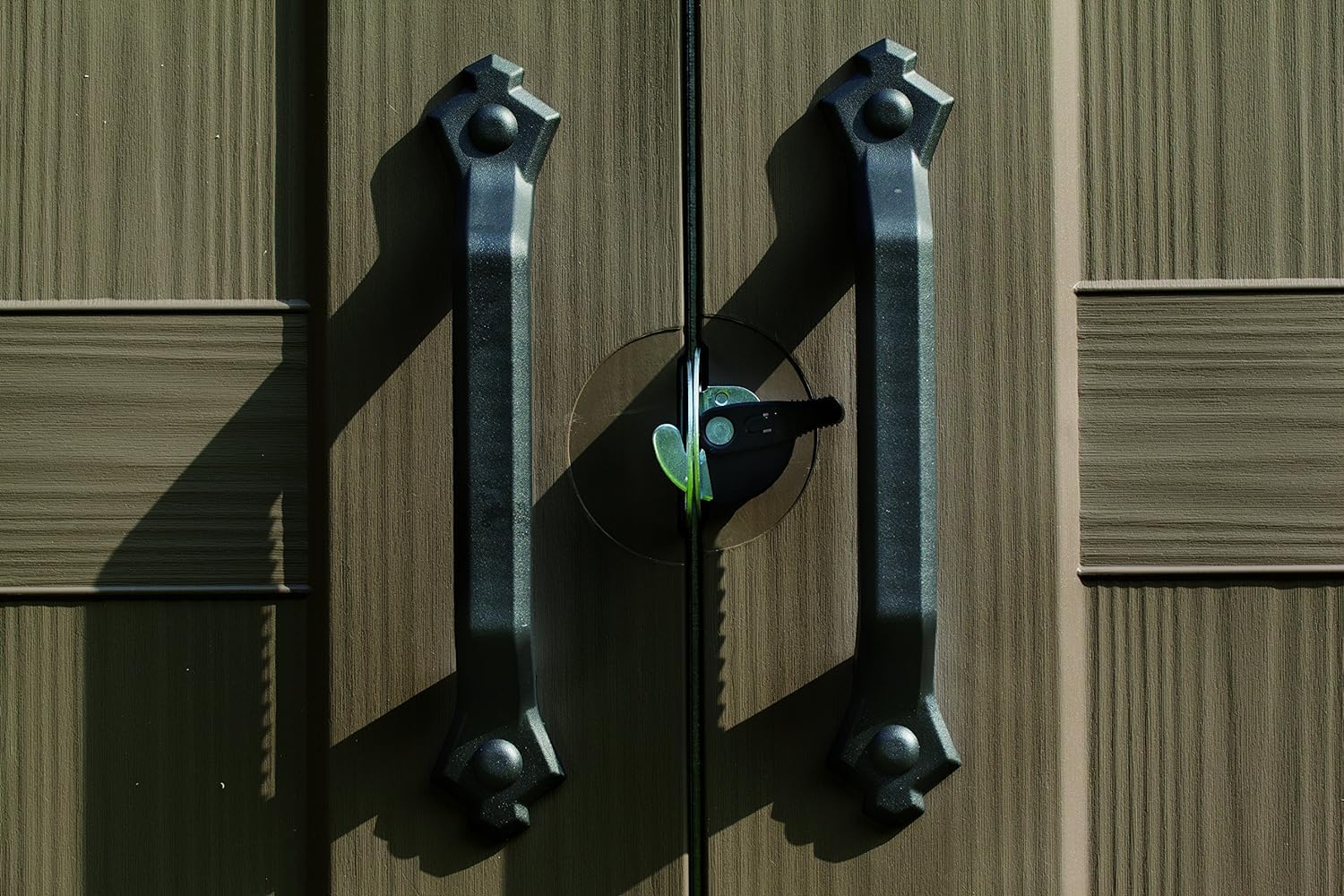 - Elegant wood affect exterior with double doors, plus ventilation grills for air circulation