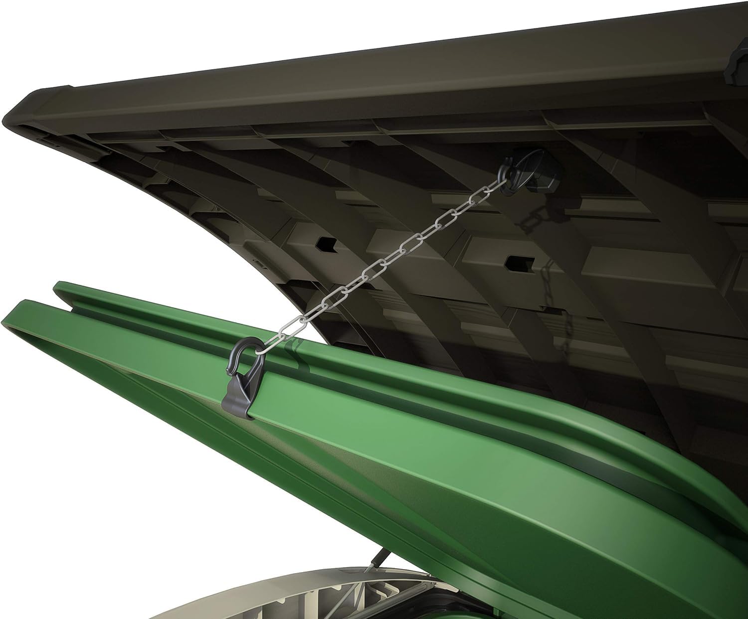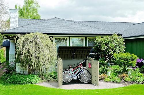 - Ideal outdoor storage solution for garden tools and equipment, BBQ and accessories, bicycles and x2 360 Litre or three 120 Litre wheelie bins