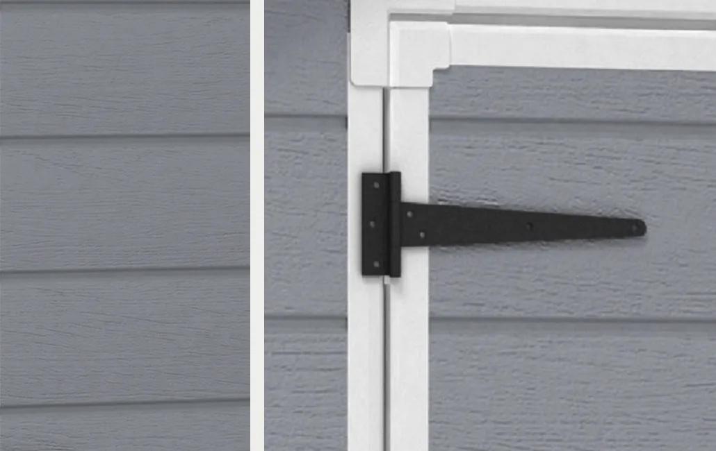 The roomy Manor 6x8 shed makes organizing your outdoor space easy and attractive.Made of innovative lightweight panels "H" shaped, double- wall structure constructed to provide extra strength to withstand heavy duty weather and are built to last.The Manor 6x8 is a maintenance- free shed, no varnish or paint is needed. It features wide double doors for easy access, integral floor panel and ventilation that keeps your stored items clean and dry, a fixed window for lots of natural light, a ceiling that is high enough to let you move around with ease and is lockable for extra safety and secure.