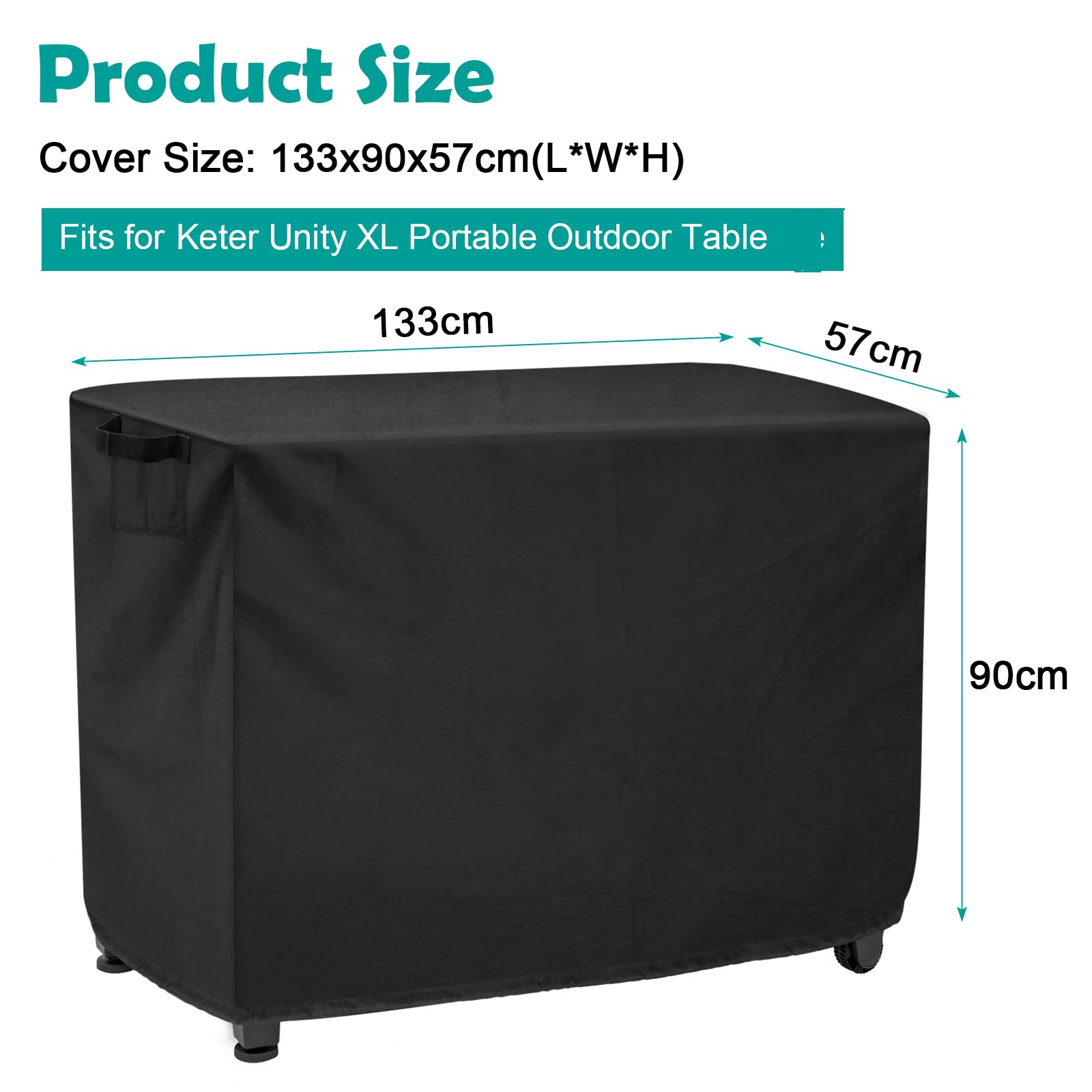 【Specially Designed】: Outdoor prep table cover is 133 x 90 x 57 cm(L*W*H), specially designed to 52-inch fit for Keter Unity XL portable outdoor table cover, in addition, it can also be used for the same size of tables, barbecue carts, and storage cabinets, service carts