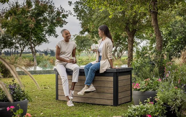 If you take a lot of pride in your garden's appearance, you want everything in it to be just right. The Signature 570L storage box is beautiful, with its exterior that is indistinguishable from real wood, right down to the grain pattern. As part of Keter's premium Signature Collection line, this storage box is durable, strong, and with a 570L (150G) capacity, it’s more than capable of keeping your outdoor spaces neat and uncluttered. The 570L storage box features long-lasting dual pistons for smooth operation, and it is lockable to keep all contents safe and secure all year long. Made with Keter’s cutting-edge composite material, this storage box is fully weather-resistant, UV protected and maintenance-free to keep your cushions, garden games and other accessories protected. Supporting up to 300kg/600 lbs on lid, the storage box comfortably can also seat two adults.