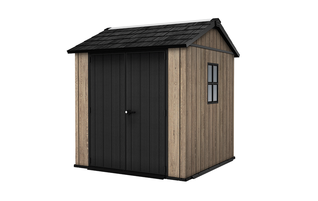 The compact Apex 7x7.5ft storage shed from Keter's Signature collection is a versatile addition to your outdoor living space. Its light, bright wooden hues effortlessly elevate any outdoor area, offering a sophisticated look that goes beyond the ordinary. The realistic wood-look walls are crafted from our innovative, cutting-edge composite material, ensuring they won’t chip, peel, flake, rot, or sustain water damage. Completely maintenance-free and weather-resistant, this shed stands the test of time.